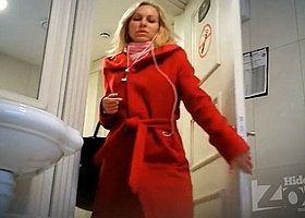 Блондинка в туалете кафе попалась на скрытую камеру